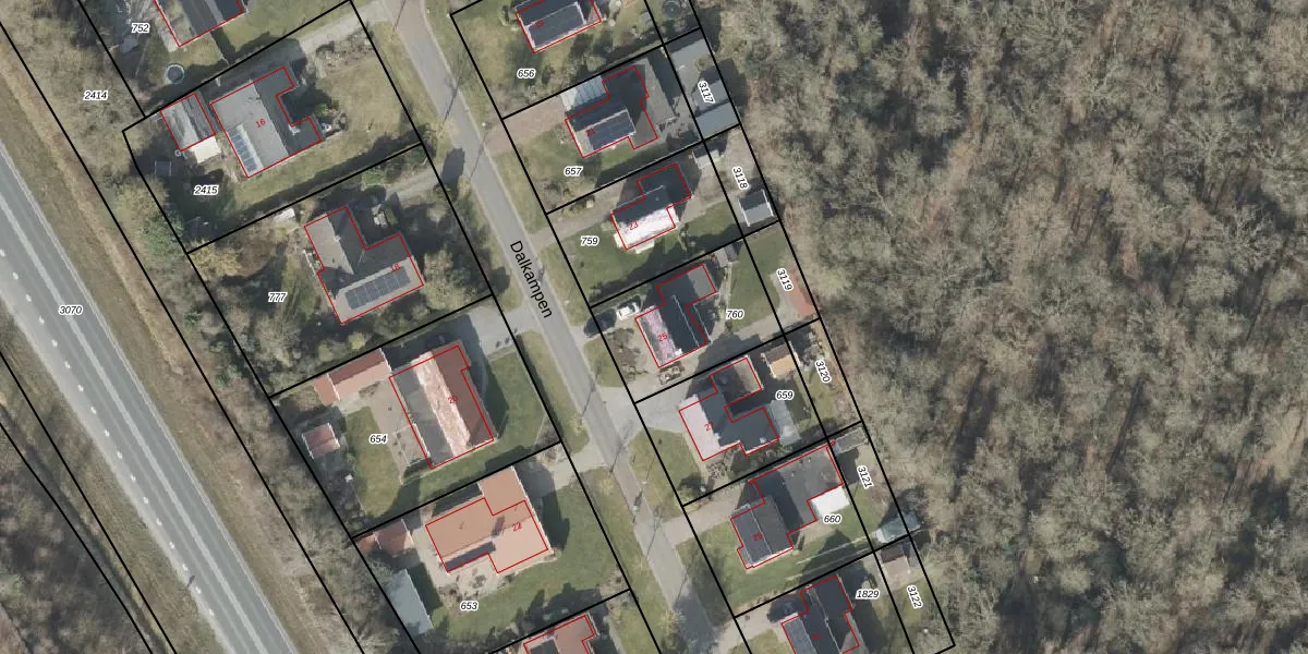 Het perceel waarop Dalkampen 25 staat heeft een oppervlakte van 409 m². Dit is een groot perceel. De perceeloppervlakte wordt geregistreerd door het Kadaster. Gedetailleerde informatie over de maten van dit perceel kunt u vinden in het rapport Kadastrale kaart met maatvoering van Dalkampen 25.