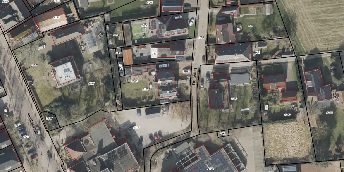 Het perceel waarop De Gang 1-A staat heeft een oppervlakte van 987 m². Dit is een groot perceel. De perceeloppervlakte wordt geregistreerd door het Kadaster. Gedetailleerde informatie over de maten van dit perceel kunt u vinden in het rapport Kadastrale kaart met maatvoering van De Gang 1-A.