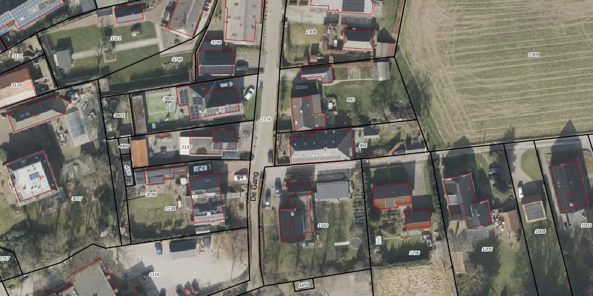 Het perceel waarop De Gang 4 staat heeft een oppervlakte van 555 m². Dit is een groot perceel. De perceeloppervlakte wordt geregistreerd door het Kadaster. Gedetailleerde informatie over de maten van dit perceel kunt u vinden in het rapport Kadastrale kaart met maatvoering van De Gang 4.