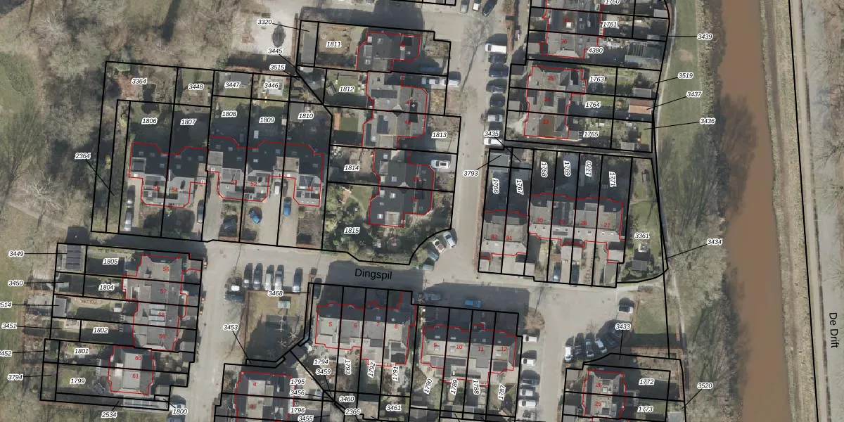 Het perceel waarop Dingspil 50 staat heeft een oppervlakte van 467 m². Dit is een groot perceel. De perceeloppervlakte wordt geregistreerd door het Kadaster. Gedetailleerde informatie over de maten van dit perceel kunt u vinden in het rapport Kadastrale kaart met maatvoering van Dingspil 50.
