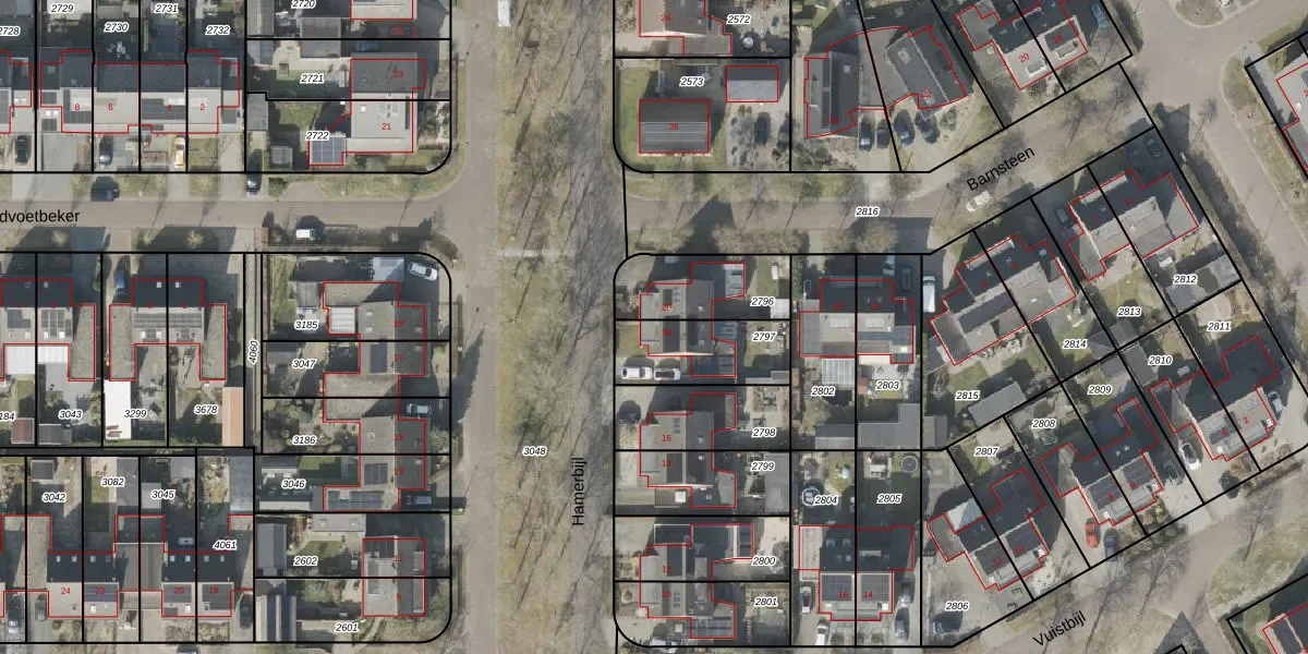 Het perceel waarop Hamerbijl 18 staat heeft een oppervlakte van 269 m². Dit is een middelgroot perceel. De perceeloppervlakte wordt geregistreerd door het Kadaster. Gedetailleerde informatie over de maten van dit perceel kunt u vinden in het rapport Kadastrale kaart met maatvoering van Hamerbijl 18.