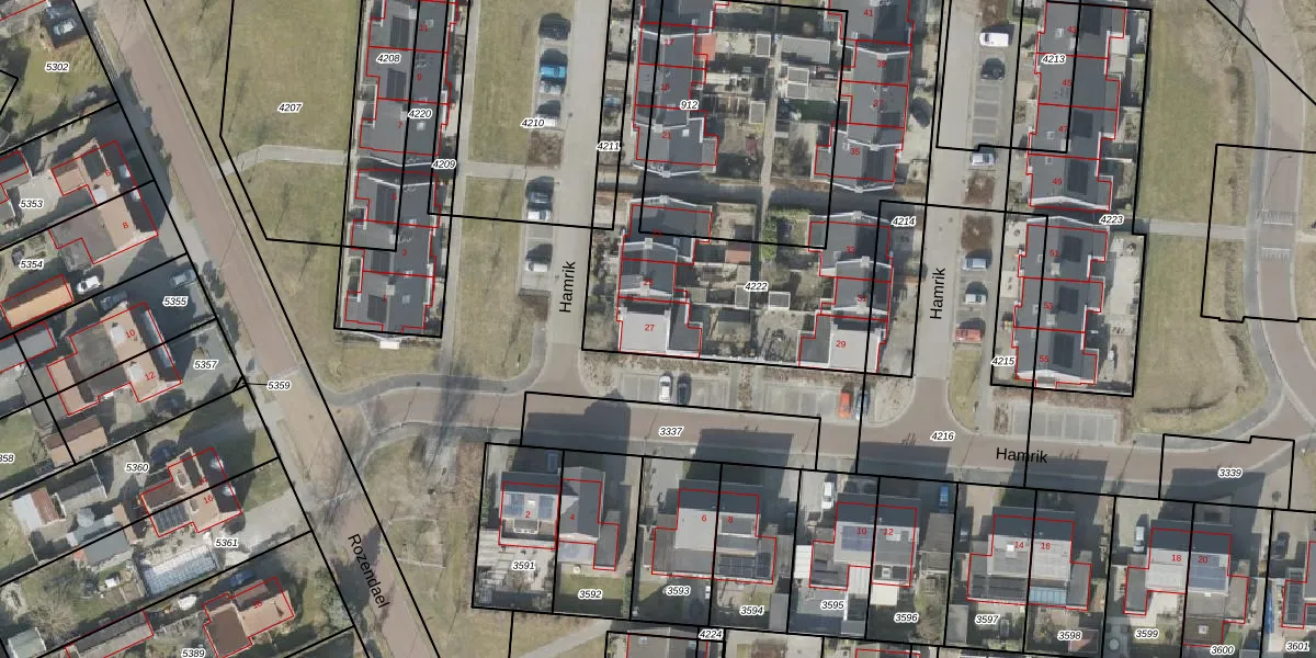 Het perceel waarop Hamrik 27 staat heeft een oppervlakte van 1709 m². Dit is een zeer groot perceel. De perceeloppervlakte wordt geregistreerd door het Kadaster. Gedetailleerde informatie over de maten van dit perceel kunt u vinden in het rapport Kadastrale kaart met maatvoering van Hamrik 27.