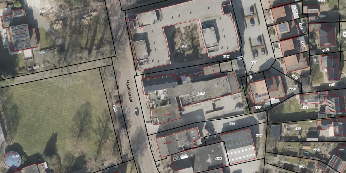 Het perceel waarop Hoofdstraat 59-D staat heeft een oppervlakte van 2021 m². Dit is een zeer groot perceel. De perceeloppervlakte wordt geregistreerd door het Kadaster. Gedetailleerde informatie over de maten van dit perceel kunt u vinden in het rapport Kadastrale kaart met maatvoering van Hoofdstraat 59-D.