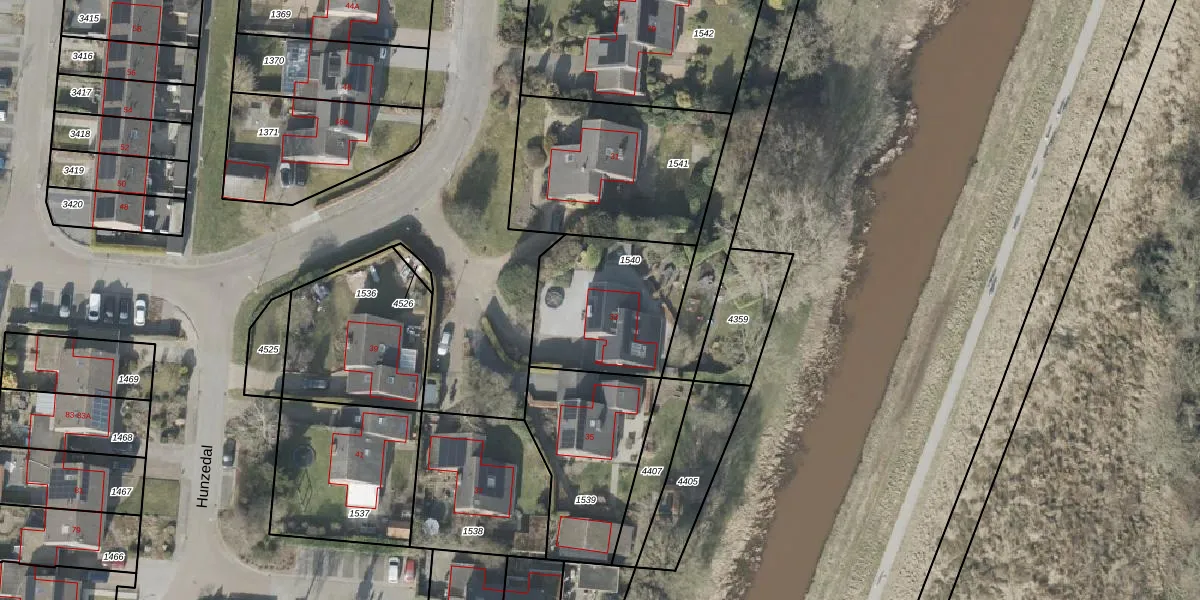 Het perceel waarop Hunzedal 33 staat heeft een oppervlakte van 533 m². Dit is een groot perceel. De perceeloppervlakte wordt geregistreerd door het Kadaster. Gedetailleerde informatie over de maten van dit perceel kunt u vinden in het rapport Kadastrale kaart met maatvoering van Hunzedal 33.