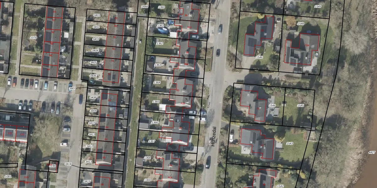 Het perceel waarop Hunzedal 40 staat heeft een oppervlakte van 320 m². Dit is een groot perceel. De perceeloppervlakte wordt geregistreerd door het Kadaster. Gedetailleerde informatie over de maten van dit perceel kunt u vinden in het rapport Kadastrale kaart met maatvoering van Hunzedal 40.