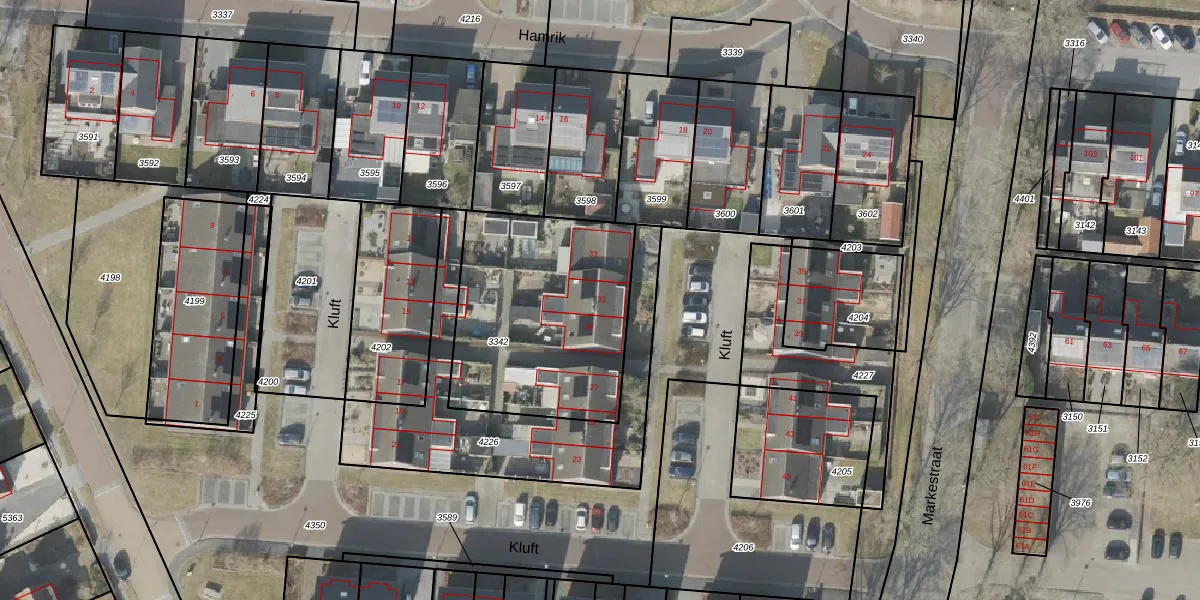Het perceel waarop Kluft 31 staat heeft een oppervlakte van 949 m². Dit is een groot perceel. De perceeloppervlakte wordt geregistreerd door het Kadaster. Gedetailleerde informatie over de maten van dit perceel kunt u vinden in het rapport Kadastrale kaart met maatvoering van Kluft 31.