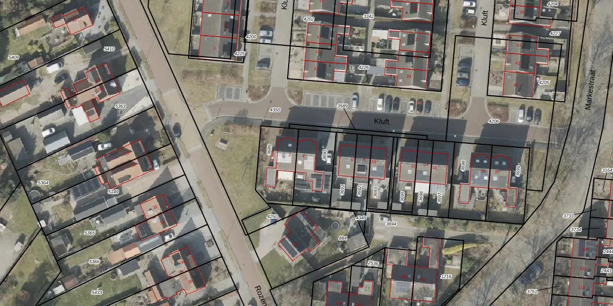 Het perceel waarop Kluft 4 staat heeft een oppervlakte van 307 m². Dit is een groot perceel. De perceeloppervlakte wordt geregistreerd door het Kadaster. Gedetailleerde informatie over de maten van dit perceel kunt u vinden in het rapport Kadastrale kaart met maatvoering van Kluft 4.