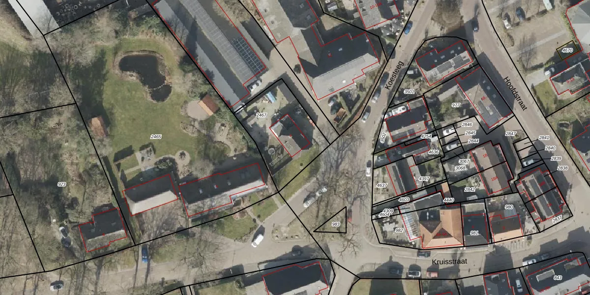 Het perceel waarop Koesteeg 4 staat heeft een oppervlakte van 625 m². Dit is een groot perceel. De perceeloppervlakte wordt geregistreerd door het Kadaster. Gedetailleerde informatie over de maten van dit perceel kunt u vinden in het rapport Kadastrale kaart met maatvoering van Koesteeg 4.