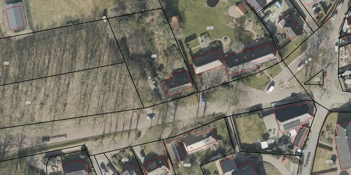 Het perceel waarop Koesteeg 8 staat heeft een oppervlakte van 1710 m². Dit is een zeer groot perceel. De perceeloppervlakte wordt geregistreerd door het Kadaster. Gedetailleerde informatie over de maten van dit perceel kunt u vinden in het rapport Kadastrale kaart met maatvoering van Koesteeg 8.