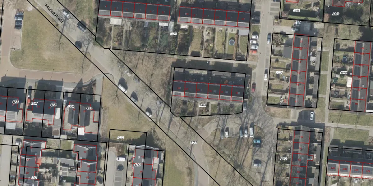 Het perceel waarop Markestraat 27 staat heeft een oppervlakte van 918 m². Dit is een groot perceel. De perceeloppervlakte wordt geregistreerd door het Kadaster. Gedetailleerde informatie over de maten van dit perceel kunt u vinden in het rapport Kadastrale kaart met maatvoering van Markestraat 27.