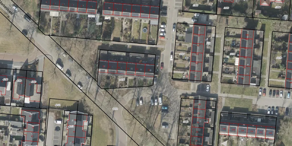 Het perceel waarop Markestraat 35 staat heeft een oppervlakte van 918 m². Dit is een groot perceel. De perceeloppervlakte wordt geregistreerd door het Kadaster. Gedetailleerde informatie over de maten van dit perceel kunt u vinden in het rapport Kadastrale kaart met maatvoering van Markestraat 35.