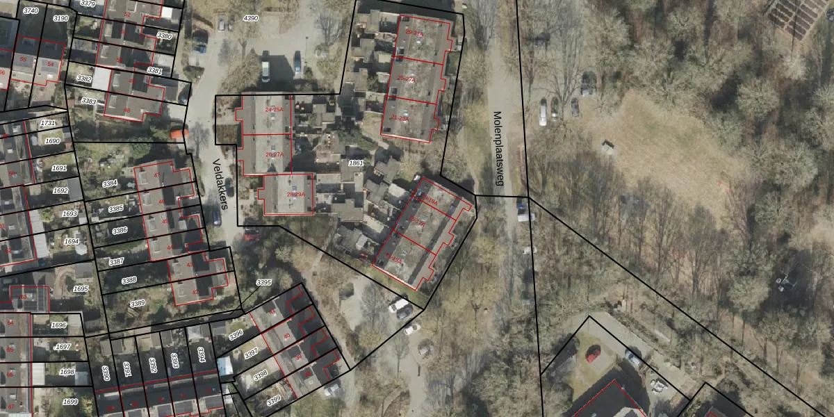Het perceel waarop Molenplaatsweg 17-A staat heeft een oppervlakte van 2761 m². Dit is een zeer groot perceel. De perceeloppervlakte wordt geregistreerd door het Kadaster. Gedetailleerde informatie over de maten van dit perceel kunt u vinden in het rapport Kadastrale kaart met maatvoering van Molenplaatsweg 17-A.