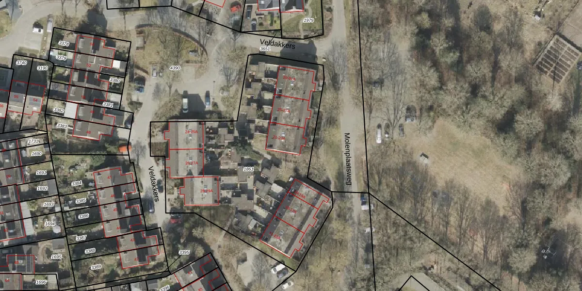 Het perceel waarop Molenplaatsweg 21 staat heeft een oppervlakte van 2761 m². Dit is een zeer groot perceel. De perceeloppervlakte wordt geregistreerd door het Kadaster. Gedetailleerde informatie over de maten van dit perceel kunt u vinden in het rapport Kadastrale kaart met maatvoering van Molenplaatsweg 21.