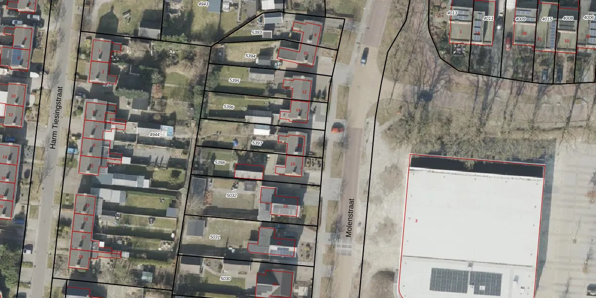 Het perceel waarop Molenstraat 16 staat heeft een oppervlakte van 399 m². Dit is een groot perceel. De perceeloppervlakte wordt geregistreerd door het Kadaster. Gedetailleerde informatie over de maten van dit perceel kunt u vinden in het rapport Kadastrale kaart met maatvoering van Molenstraat 16.
