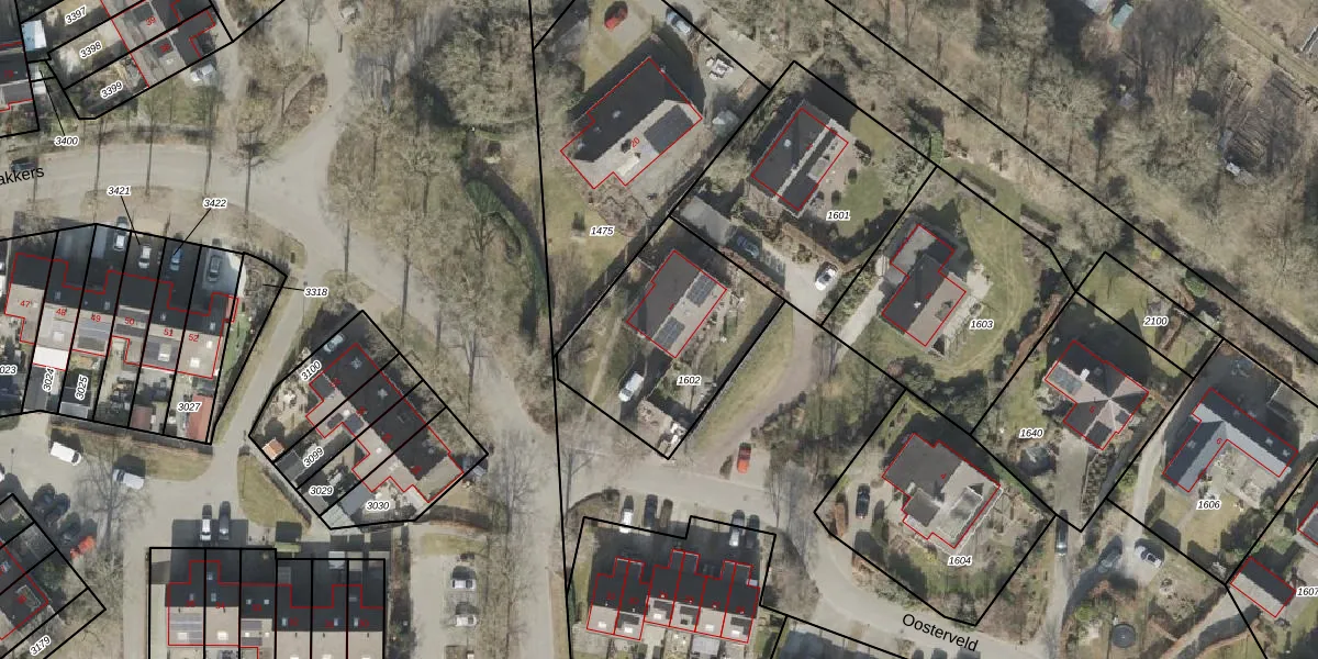 Het perceel waarop Oosterveld 1 staat heeft een oppervlakte van 677 m². Dit is een groot perceel. De perceeloppervlakte wordt geregistreerd door het Kadaster. Gedetailleerde informatie over de maten van dit perceel kunt u vinden in het rapport Kadastrale kaart met maatvoering van Oosterveld 1.