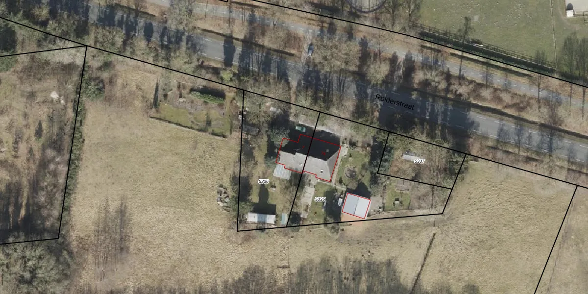 Rolderstraat 7 is gelegen op kadastraal perceel BGR01F5336. Deze kadastrale aanduiding is uniek en wordt gebruikt door het Kadaster om eigendomsrechten en andere zakelijke rechten vast te leggen. Het perceel maakt onderdeel uit van de kadastrale gemeente Borger.
