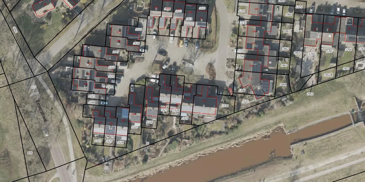 Gebruik de zoekbalk of klik op een perceel voor informatie over de adressen binnen dit perceel.