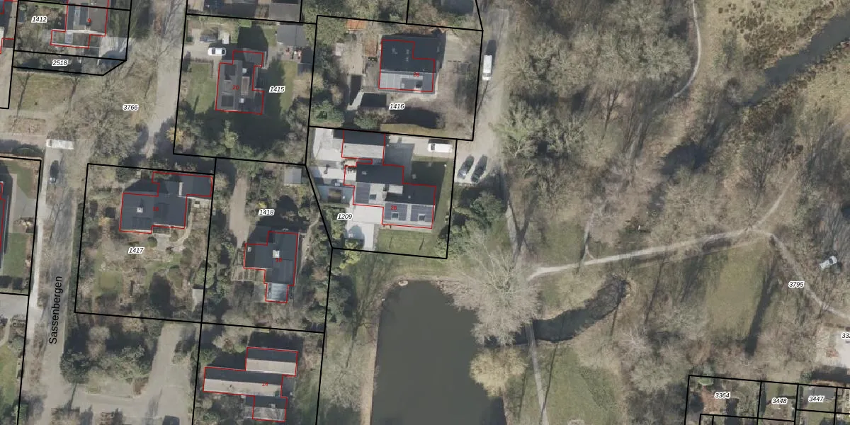 Het perceel waarop Sassenbergen 28 staat heeft een oppervlakte van 906 m². Dit is een groot perceel. De perceeloppervlakte wordt geregistreerd door het Kadaster. Gedetailleerde informatie over de maten van dit perceel kunt u vinden in het rapport Kadastrale kaart met maatvoering van Sassenbergen 28.