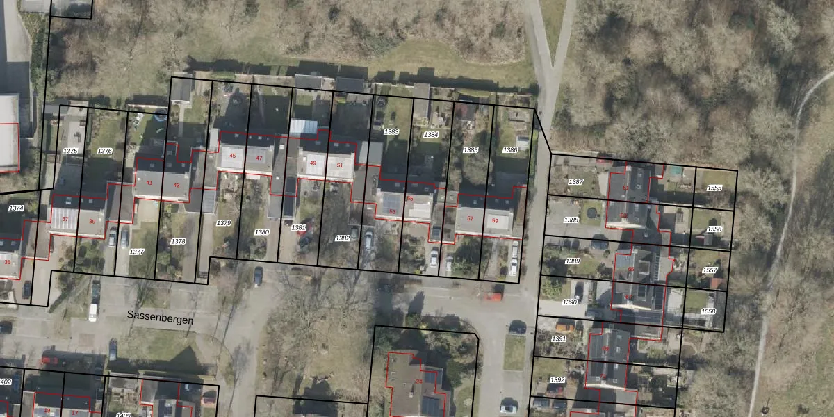 Het perceel waarop Sassenbergen 55 staat heeft een oppervlakte van 408 m². Dit is een groot perceel. De perceeloppervlakte wordt geregistreerd door het Kadaster. Gedetailleerde informatie over de maten van dit perceel kunt u vinden in het rapport Kadastrale kaart met maatvoering van Sassenbergen 55.