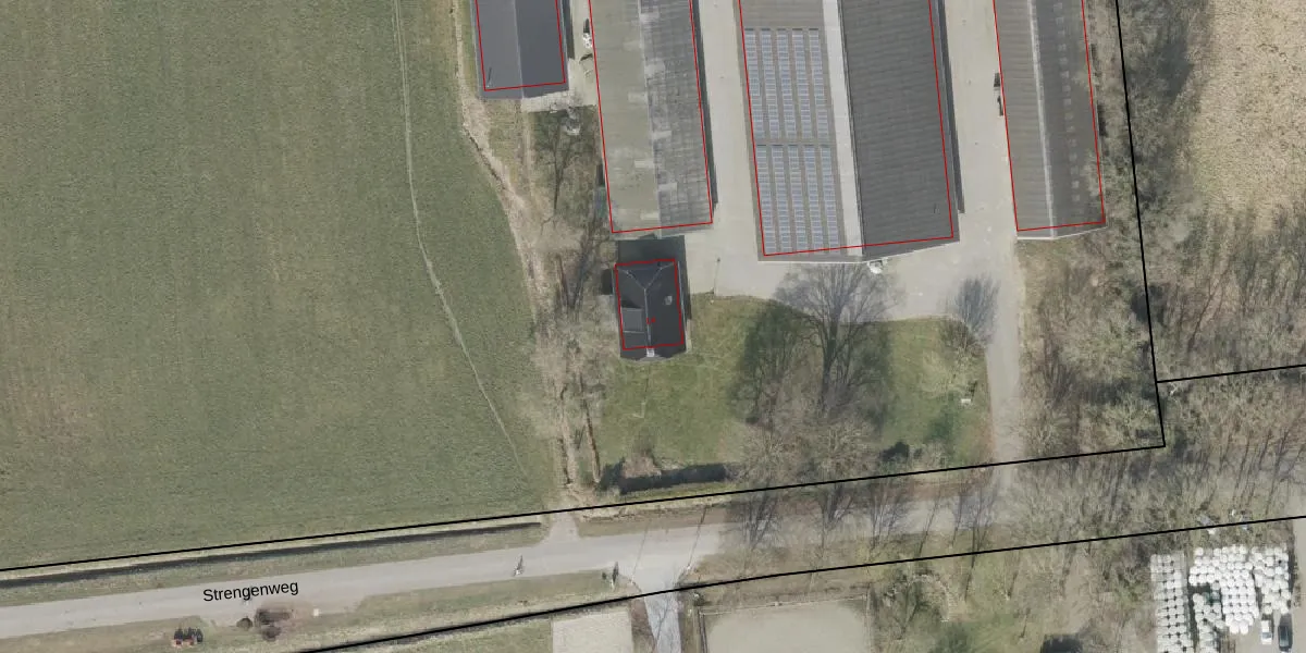 Het perceel waarop Strengenweg 14 staat heeft een oppervlakte van 4,0 ha. Dit is een zeer groot perceel. De perceeloppervlakte wordt geregistreerd door het Kadaster. Gedetailleerde informatie over de maten van dit perceel kunt u vinden in het rapport Kadastrale kaart met maatvoering van Strengenweg 14.