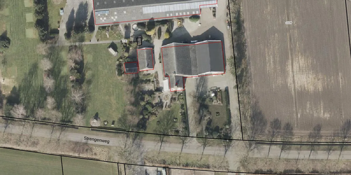 Het perceel waarop Strengenweg 6 staat heeft een oppervlakte van 12,5 ha. Dit is een zeer groot perceel. De perceeloppervlakte wordt geregistreerd door het Kadaster. Gedetailleerde informatie over de maten van dit perceel kunt u vinden in het rapport Kadastrale kaart met maatvoering van Strengenweg 6.