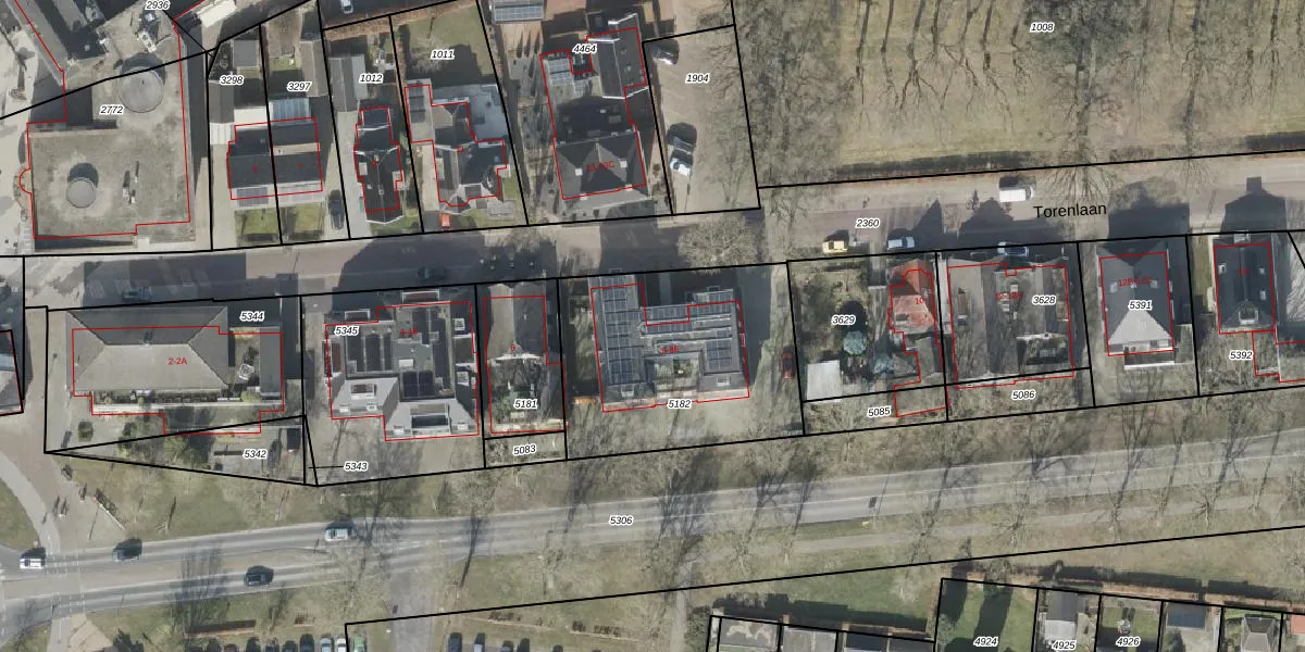 Het perceel waarop Torenlaan 8 staat heeft een oppervlakte van 988 m². Dit is een groot perceel. De perceeloppervlakte wordt geregistreerd door het Kadaster. Gedetailleerde informatie over de maten van dit perceel kunt u vinden in het rapport Kadastrale kaart met maatvoering van Torenlaan 8.