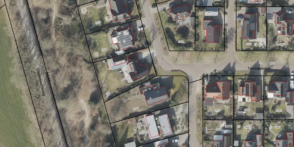 Het perceel waarop Trechterbeker 33 staat heeft een oppervlakte van 945 m². Dit is een groot perceel. De perceeloppervlakte wordt geregistreerd door het Kadaster. Gedetailleerde informatie over de maten van dit perceel kunt u vinden in het rapport Kadastrale kaart met maatvoering van Trechterbeker 33.