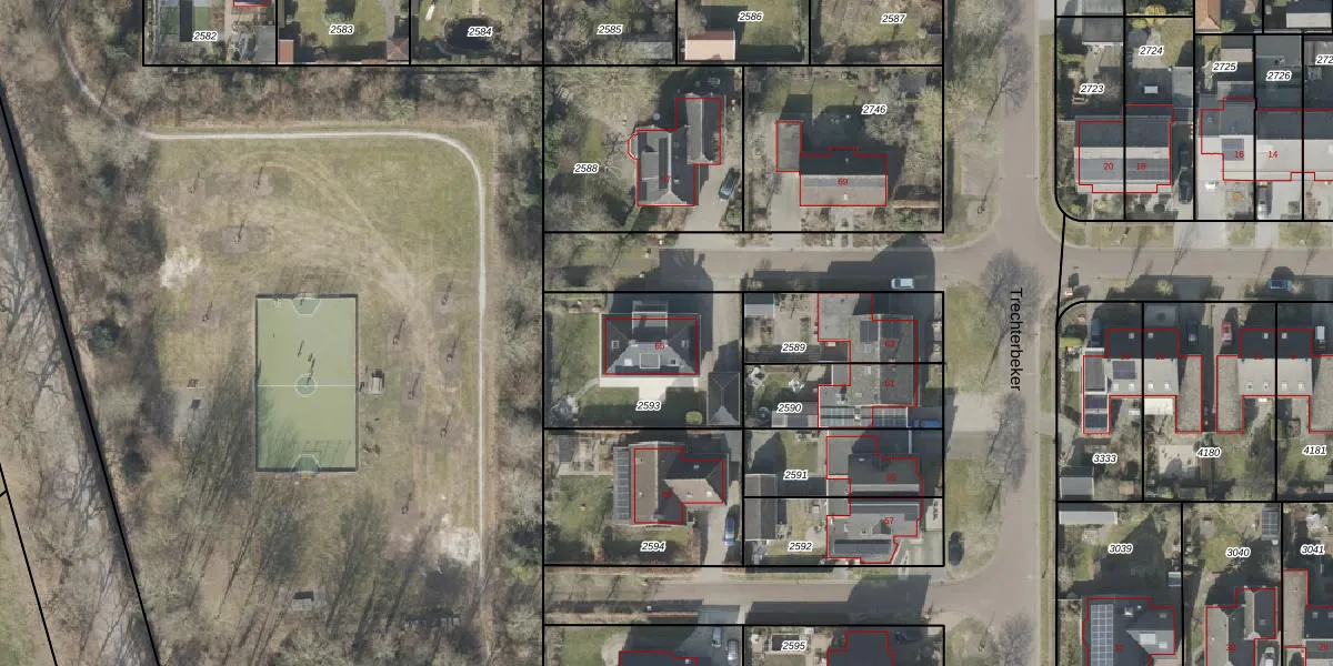 Het perceel waarop Trechterbeker 65 staat heeft een oppervlakte van 615 m². Dit is een groot perceel. De perceeloppervlakte wordt geregistreerd door het Kadaster. Gedetailleerde informatie over de maten van dit perceel kunt u vinden in het rapport Kadastrale kaart met maatvoering van Trechterbeker 65.