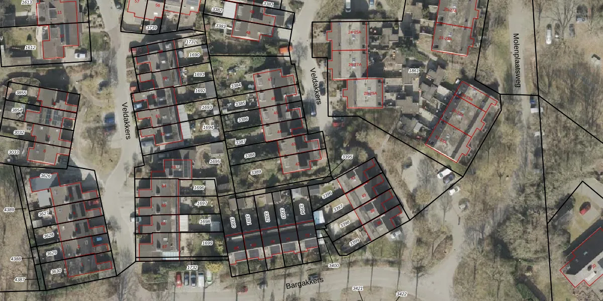 Gebruik de zoekbalk of klik op een perceel voor informatie over de adressen binnen dit perceel.