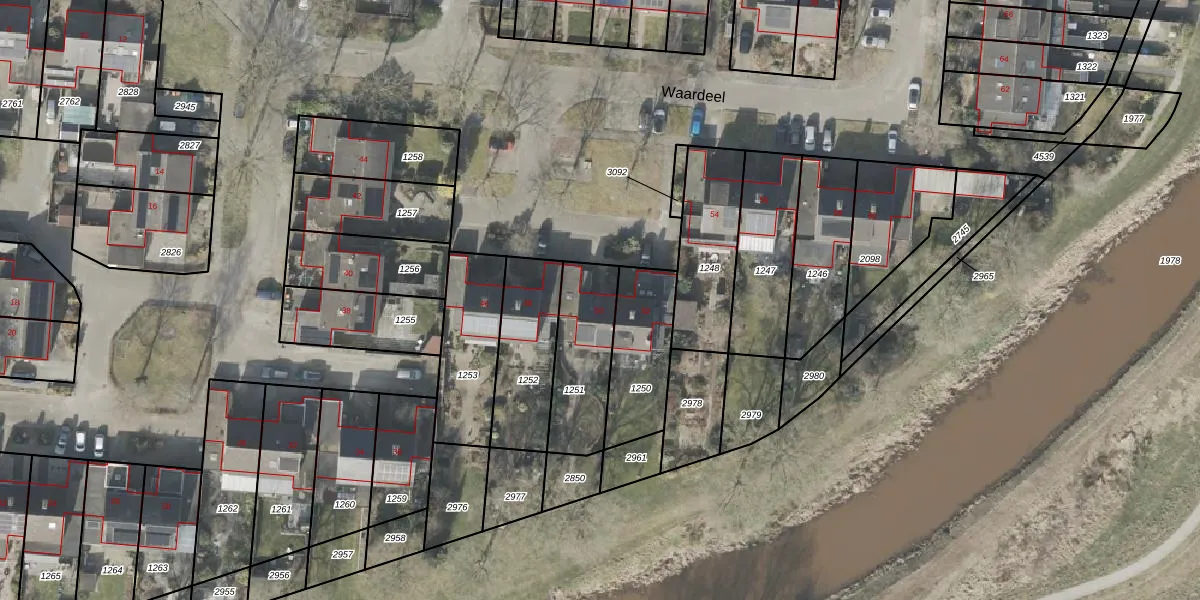 Het perceel waarop Waardeel 50 staat heeft een oppervlakte van 303 m². Dit is een groot perceel. De perceeloppervlakte wordt geregistreerd door het Kadaster. Gedetailleerde informatie over de maten van dit perceel kunt u vinden in het rapport Kadastrale kaart met maatvoering van Waardeel 50.