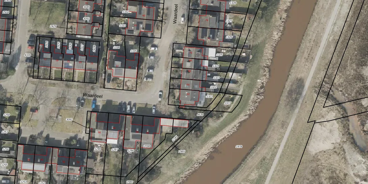 Het perceel waarop Waardeel 62 staat heeft een oppervlakte van 215 m². Dit is een middelgroot perceel. De perceeloppervlakte wordt geregistreerd door het Kadaster. Gedetailleerde informatie over de maten van dit perceel kunt u vinden in het rapport Kadastrale kaart met maatvoering van Waardeel 62.