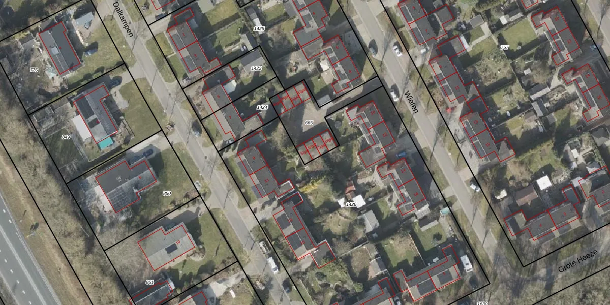 Het perceel waarop Wieten 5-gar staat heeft een oppervlakte van 400 m². Dit is een groot perceel. De perceeloppervlakte wordt geregistreerd door het Kadaster. Gedetailleerde informatie over de maten van dit perceel kunt u vinden in het rapport Kadastrale kaart met maatvoering van Wieten 5-gar.