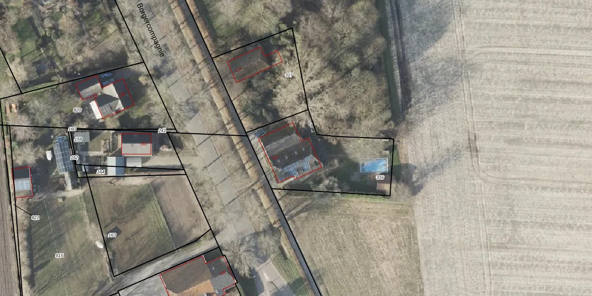 Het perceel waarop Borgercompagnie 113 staat heeft een oppervlakte van 956 m². Dit is een groot perceel. De perceeloppervlakte wordt geregistreerd door het Kadaster. Gedetailleerde informatie over de maten van dit perceel kunt u vinden in het rapport Kadastrale kaart met maatvoering van Borgercompagnie 113.