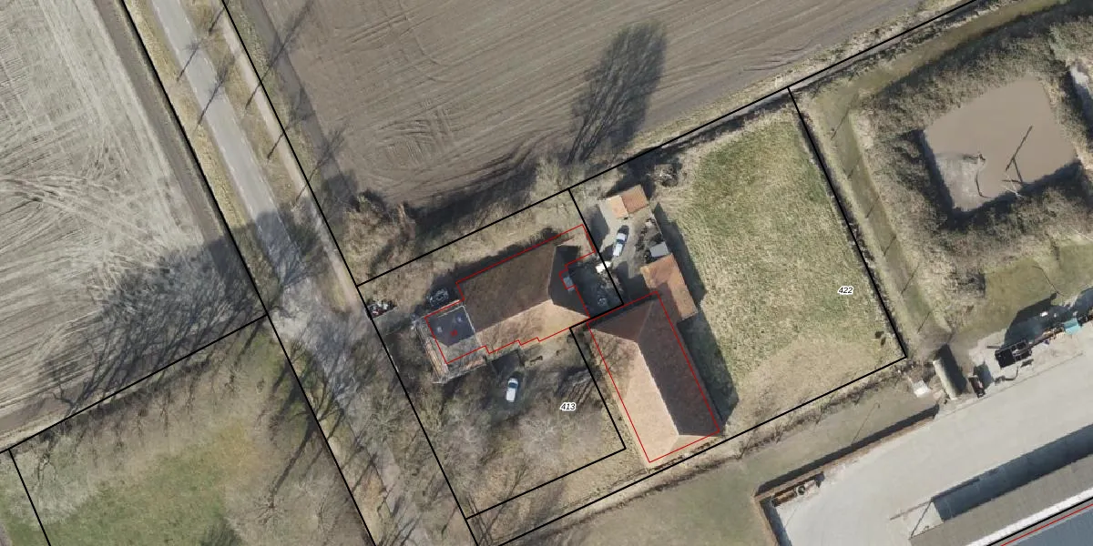 Het adres ligt op het perceel MTD01-E-413, dat zich in de kadastrale gemeente Muntendam bevindt. Het perceel is 1770 m² groot. Dat is kleiner dan de gemiddelde perceeloppervlakte in Muntendam, dat op 7414,63 m² ligt. Het grootste perceel in de kadastrale gemeente is 44,6 ha. Het kleinste perceel heeft een oppervlakte van 1 m². Op het perceel bevinden zich geen andere adressen. In de Basisregistratie Kadaster (BRK) werden de grenzen van het perceel geregistreerd op 30-03-2005.