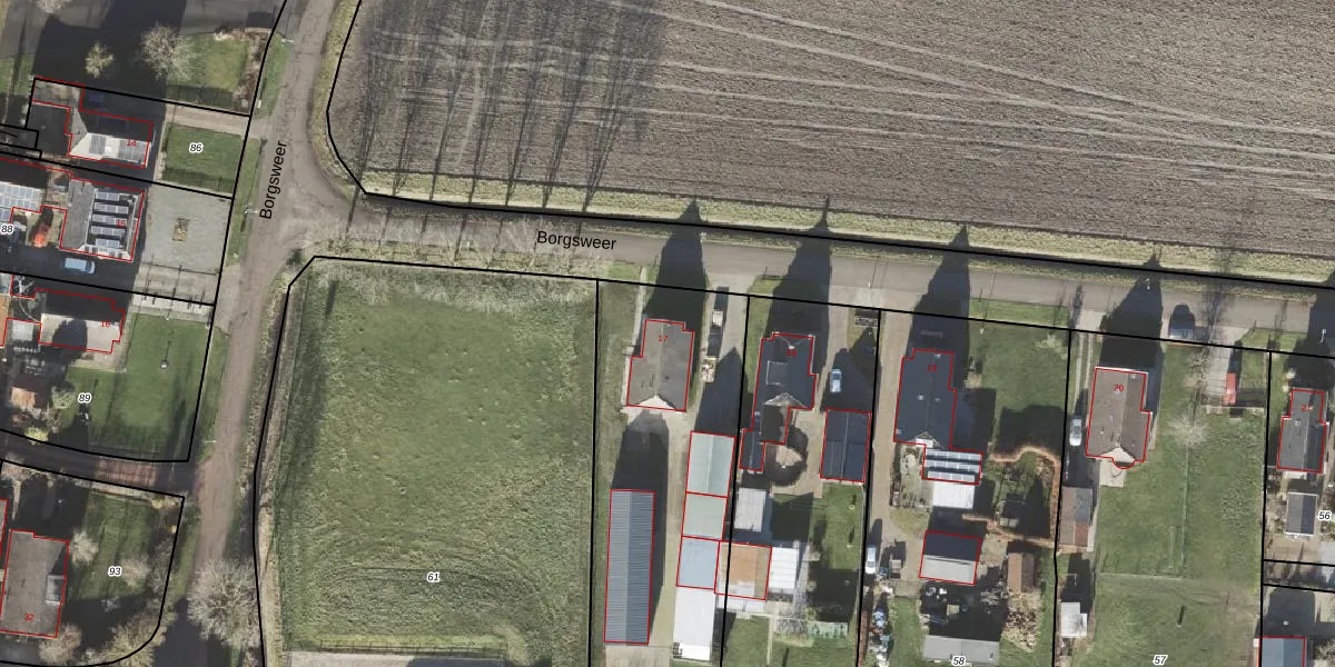 Het perceel waarop Borgsweer 17 staat heeft een oppervlakte van 1995 m². Dit is een zeer groot perceel. De perceeloppervlakte wordt geregistreerd door het Kadaster. Gedetailleerde informatie over de maten van dit perceel kunt u vinden in het rapport Kadastrale kaart met maatvoering van Borgsweer 17.
