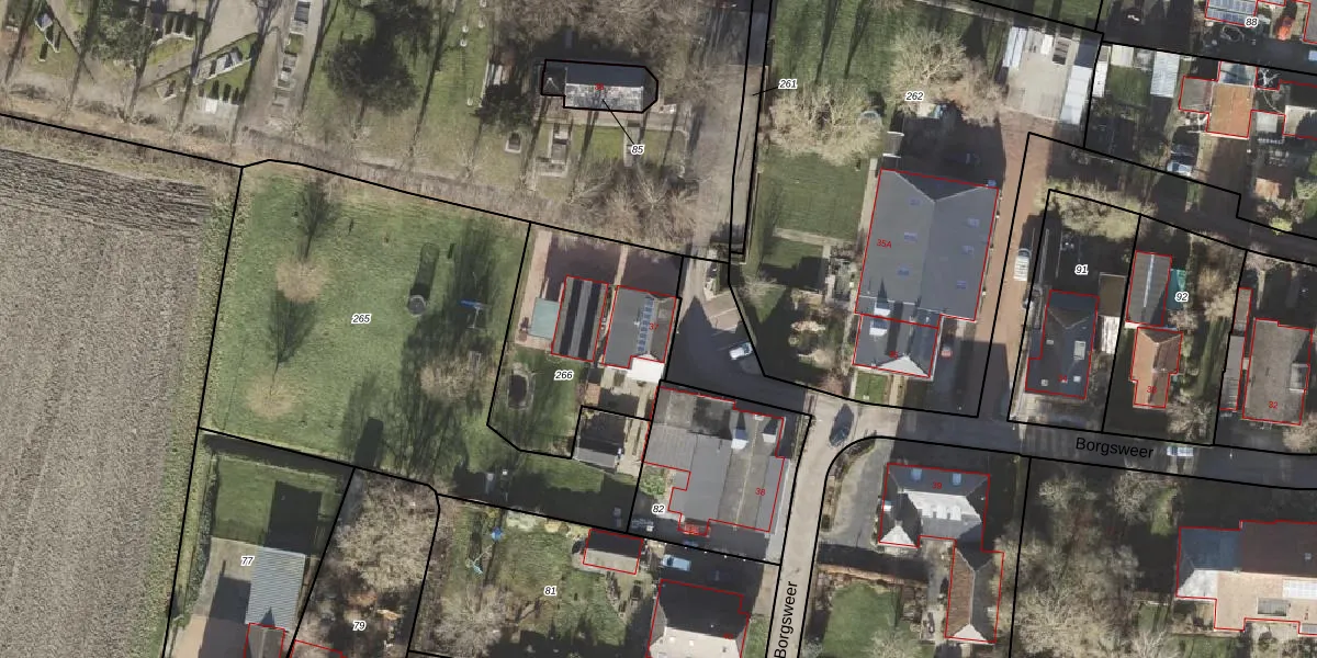 Borgsweer 37 is gelegen op kadastraal perceel TMT00I266. Deze kadastrale aanduiding is uniek en wordt gebruikt door het Kadaster om eigendomsrechten en andere zakelijke rechten vast te leggen. Het perceel maakt onderdeel uit van de kadastrale gemeente Termunten.
