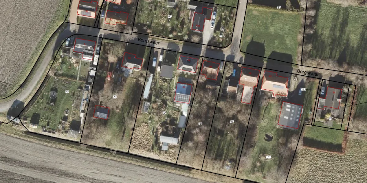 Het perceel waarop Borgsweer 49 staat heeft een oppervlakte van 1670 m². Dit is een zeer groot perceel. De perceeloppervlakte wordt geregistreerd door het Kadaster. Gedetailleerde informatie over de maten van dit perceel kunt u vinden in het rapport Kadastrale kaart met maatvoering van Borgsweer 49.
