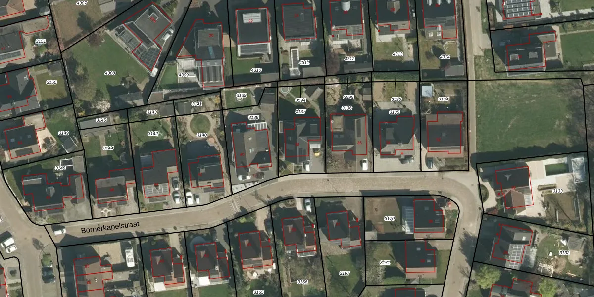Bornerkapelstraat 38 is gelegen op kadastraal perceel BOR00F3137. Deze kadastrale aanduiding is uniek en wordt gebruikt door het Kadaster om eigendomsrechten en andere zakelijke rechten vast te leggen. Het perceel maakt onderdeel uit van de kadastrale gemeente Born.