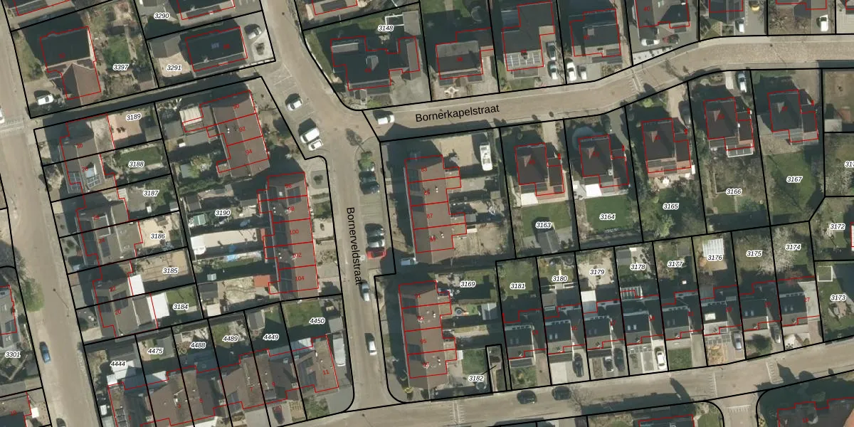 Bornerveldstraat 87 is gelegen op kadastraal perceel BOR00F3169. Deze kadastrale aanduiding is uniek en wordt gebruikt door het Kadaster om eigendomsrechten en andere zakelijke rechten vast te leggen. Het perceel maakt onderdeel uit van de kadastrale gemeente Born.