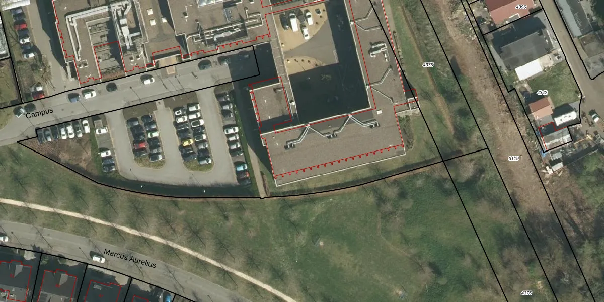 Het perceel waarop Campus 303 staat heeft een oppervlakte van 1,3 ha. Dit is een zeer groot perceel. De perceeloppervlakte wordt geregistreerd door het Kadaster. Gedetailleerde informatie over de maten van dit perceel kunt u vinden in het rapport Kadastrale kaart met maatvoering van Campus 303.