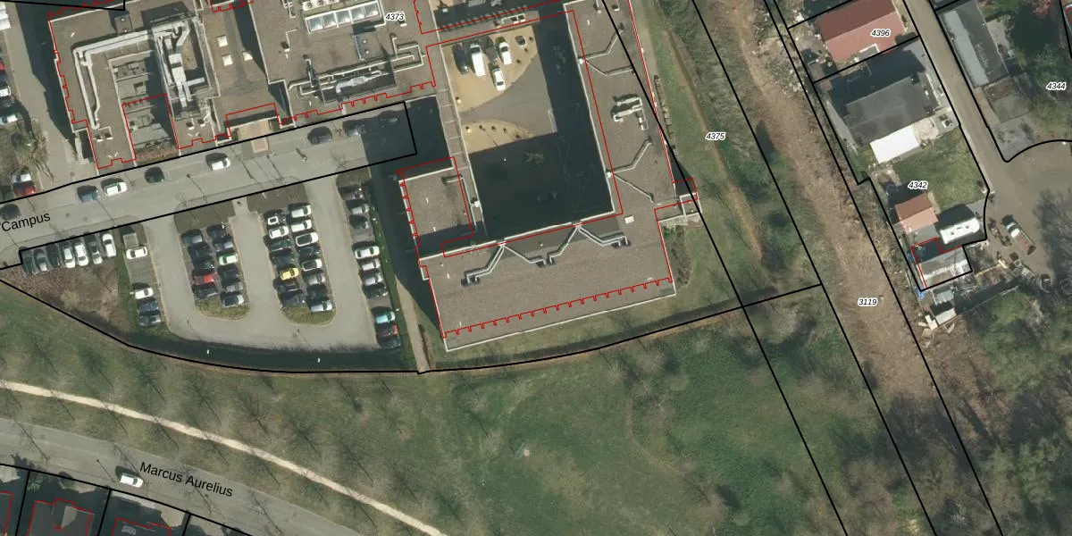 Het perceel waarop Campus 405 staat heeft een oppervlakte van 1,3 ha. Dit is een zeer groot perceel. De perceeloppervlakte wordt geregistreerd door het Kadaster. Gedetailleerde informatie over de maten van dit perceel kunt u vinden in het rapport Kadastrale kaart met maatvoering van Campus 405.