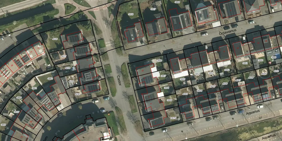 Gebruik de zoekbalk of klik op een perceel voor informatie over de adressen binnen dit perceel.