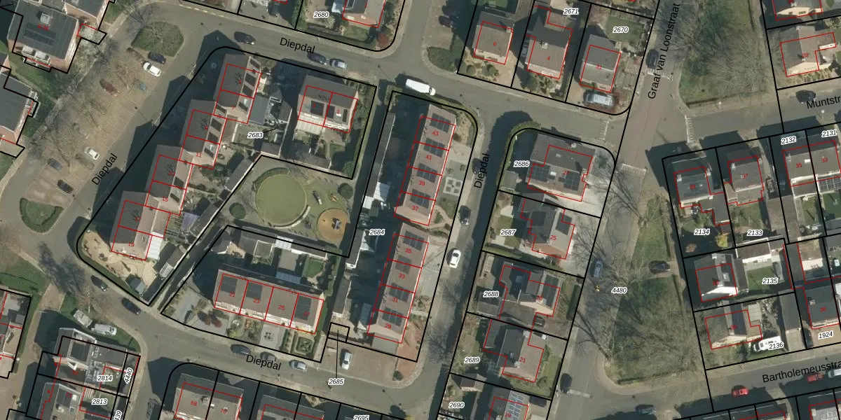 Diepdal 37 is gelegen op kadastraal perceel BOR00F2684. Deze kadastrale aanduiding is uniek en wordt gebruikt door het Kadaster om eigendomsrechten en andere zakelijke rechten vast te leggen. Het perceel maakt onderdeel uit van de kadastrale gemeente Born.