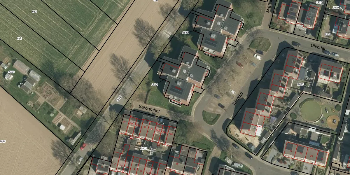 Het perceel waarop Diepdal 48 staat heeft een oppervlakte van 531 m². Dit is een groot perceel. De perceeloppervlakte wordt geregistreerd door het Kadaster. Gedetailleerde informatie over de maten van dit perceel kunt u vinden in het rapport Kadastrale kaart met maatvoering van Diepdal 48.