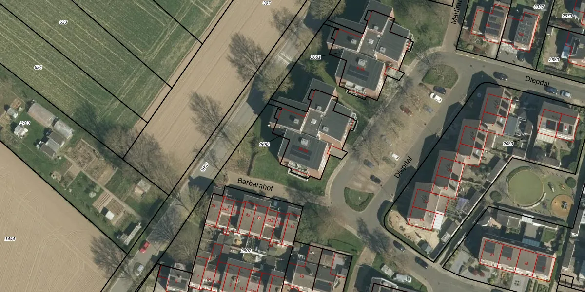 Het perceel waarop Diepdal 58 staat heeft een oppervlakte van 531 m². Dit is een groot perceel. De perceeloppervlakte wordt geregistreerd door het Kadaster. Gedetailleerde informatie over de maten van dit perceel kunt u vinden in het rapport Kadastrale kaart met maatvoering van Diepdal 58.