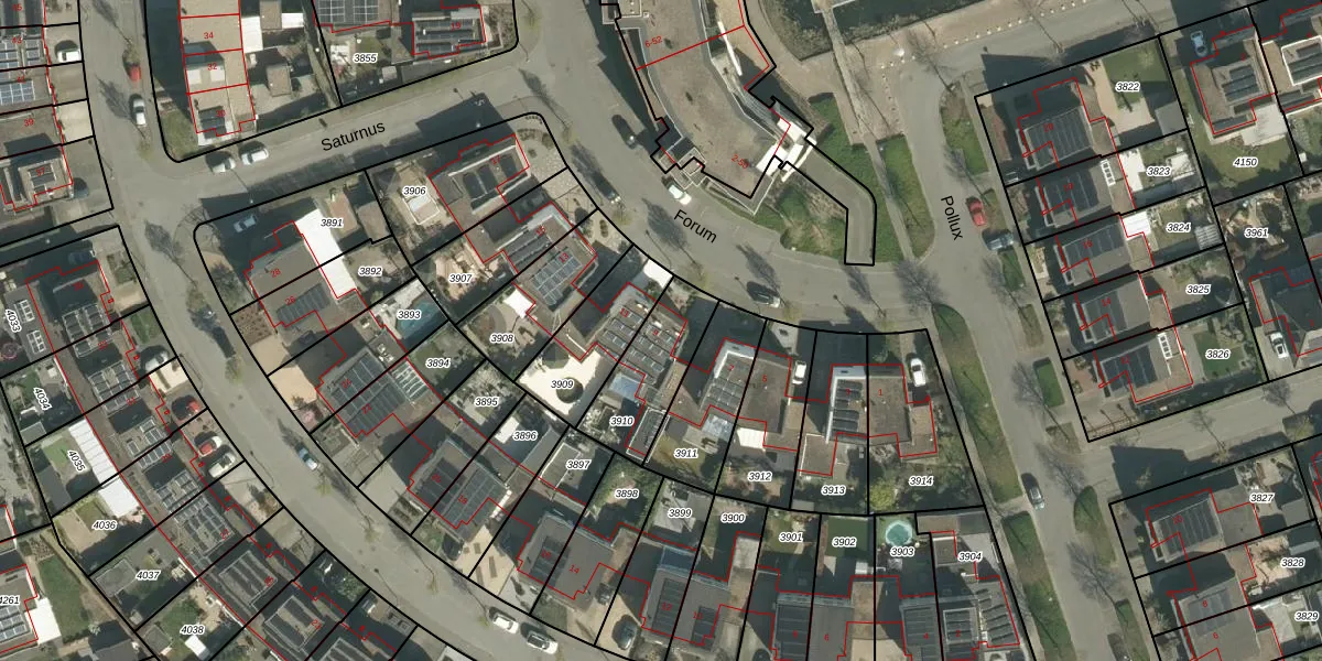 Forum 9 is gelegen op kadastraal perceel BOR00F3910. Deze kadastrale aanduiding is uniek en wordt gebruikt door het Kadaster om eigendomsrechten en andere zakelijke rechten vast te leggen. Het perceel maakt onderdeel uit van de kadastrale gemeente Born.