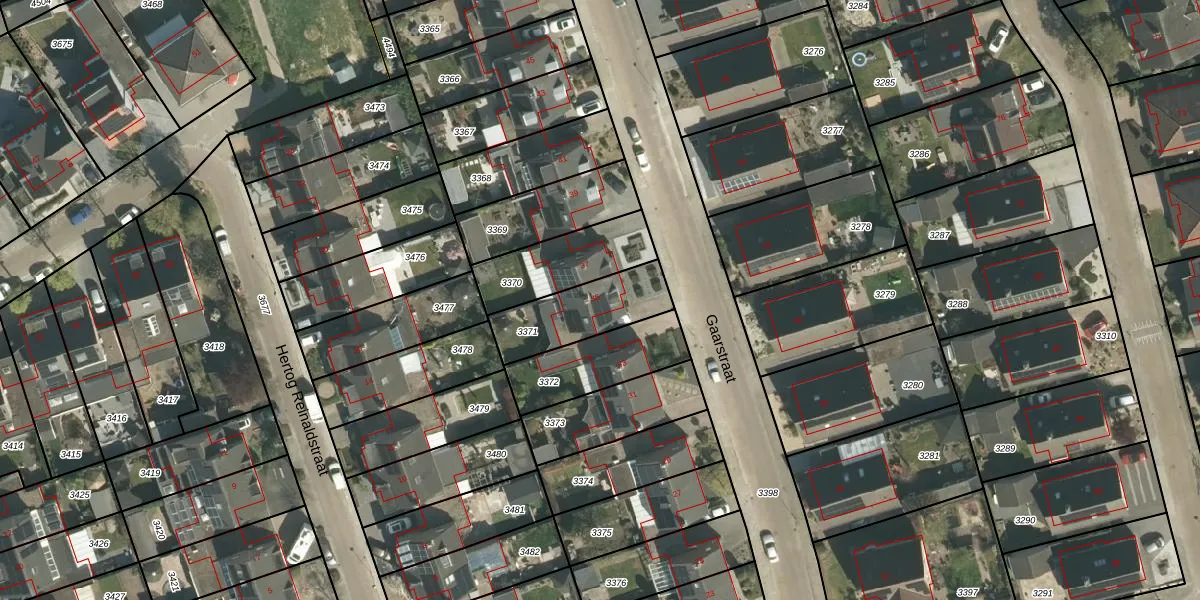 Gebruik de zoekbalk of klik op een perceel voor informatie over de adressen binnen dit perceel.