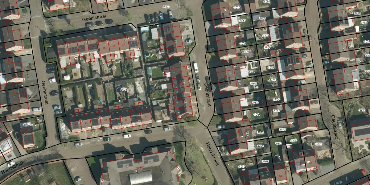 Geentstraat 44 is gelegen op kadastraal perceel BOR00F3028. Deze kadastrale aanduiding is uniek en wordt gebruikt door het Kadaster om eigendomsrechten en andere zakelijke rechten vast te leggen. Het perceel maakt onderdeel uit van de kadastrale gemeente Born.