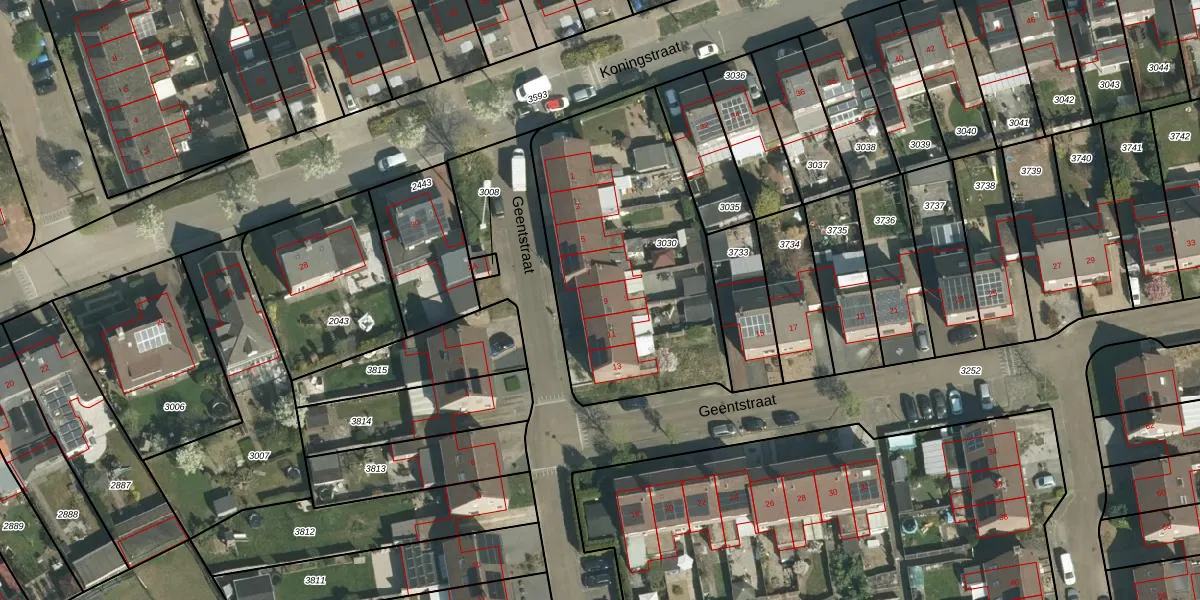 Geentstraat 9 is gelegen op kadastraal perceel BOR00F3030. Deze kadastrale aanduiding is uniek en wordt gebruikt door het Kadaster om eigendomsrechten en andere zakelijke rechten vast te leggen. Het perceel maakt onderdeel uit van de kadastrale gemeente Born.