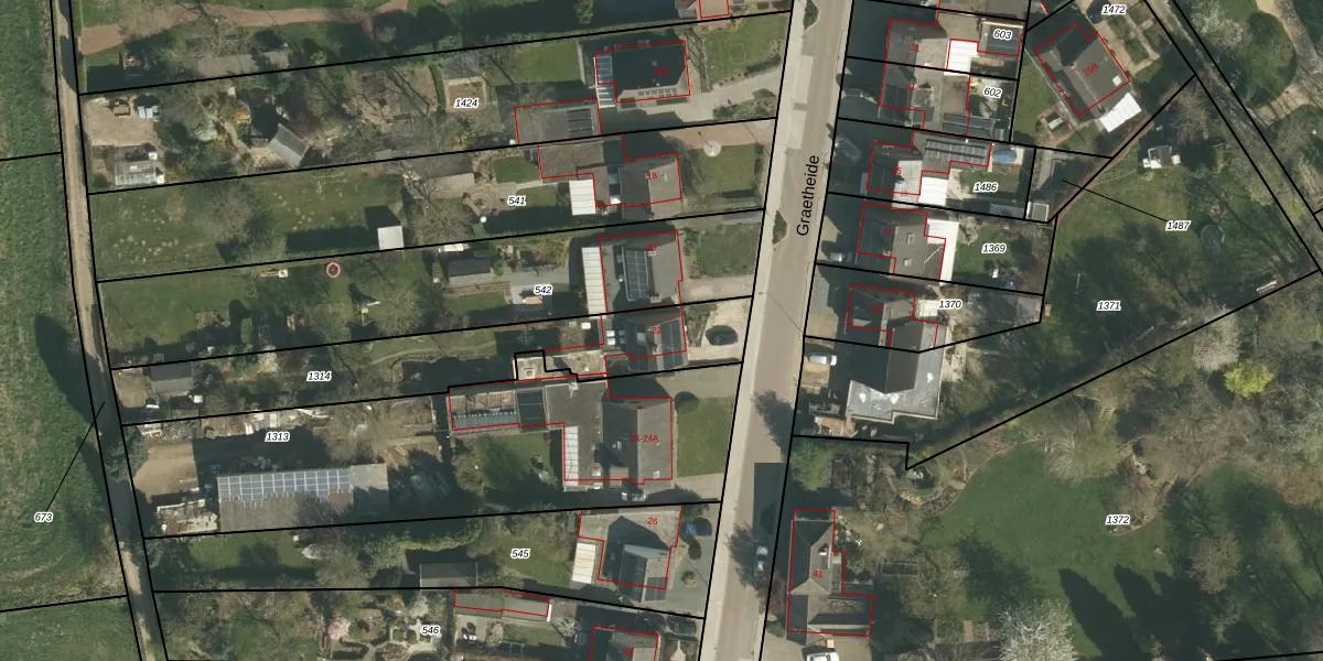 Het perceel waarop Graetheide 22 staat heeft een oppervlakte van 825 m². Dit is een groot perceel. De perceeloppervlakte wordt geregistreerd door het Kadaster. Gedetailleerde informatie over de maten van dit perceel kunt u vinden in het rapport Kadastrale kaart met maatvoering van Graetheide 22.